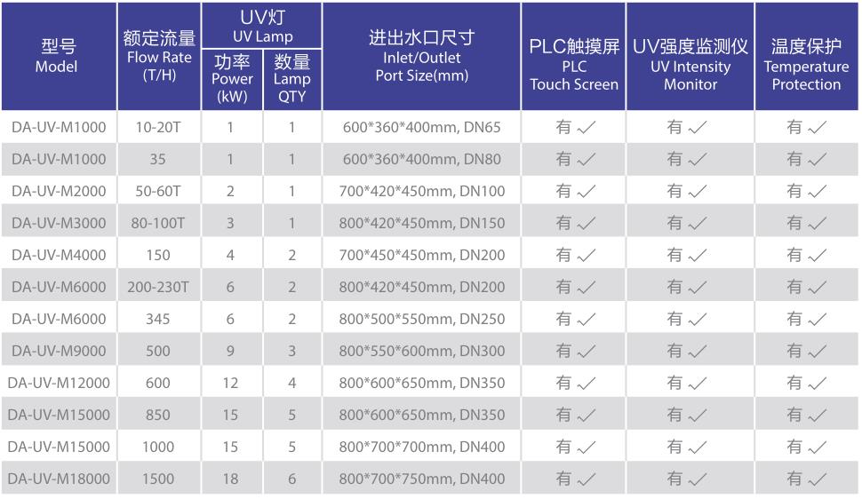 設備優點 燈管功率高,處理量大,殺菌效率高。 200nm-400nm 多譜段連續的紫外光譜輸出。 占地面積小,操作簡單。 采用高質量的中壓紫外線燈管及鎮流器,使用壽命長。