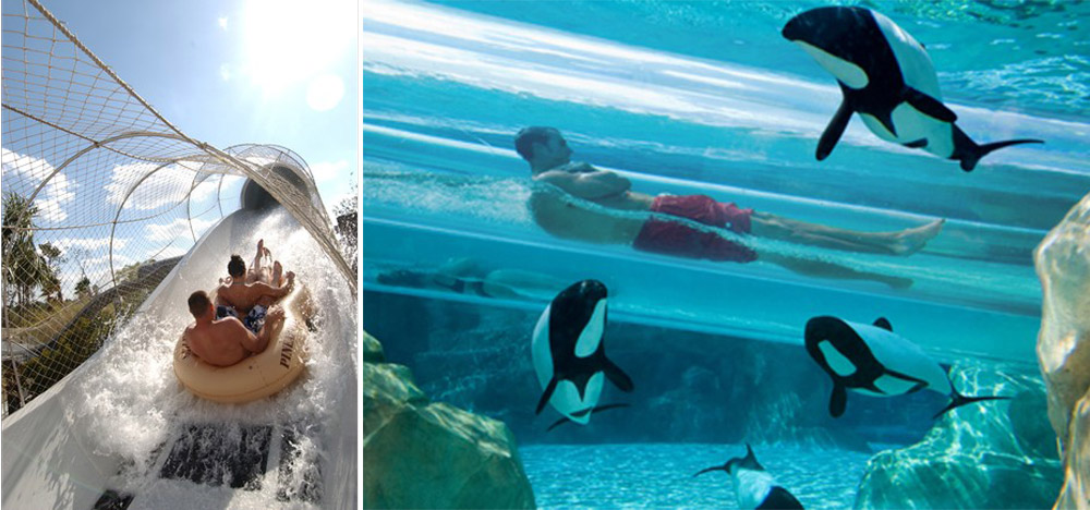 水上樂園(Aquatica):海洋世界水上公園,奧蘭多市,佛羅里達州 在這水上仙境中你能看到80,000平方英尺的人造沙灘、搖擺河(Omaka Rocka)U型滑道,以及250英尺長的水下管型滑道,讓你從一池海豚中穿行而過。(同樣值得關注的是它剛開的姐妹園、位于圣安東尼奧市的海上世界水上樂園。